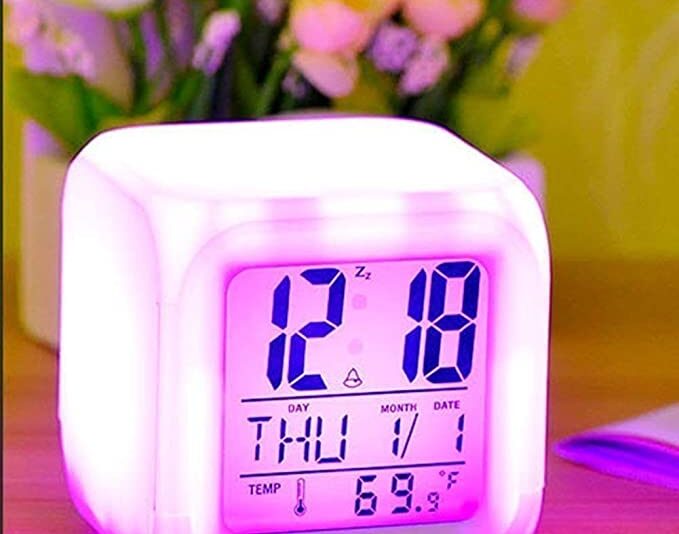UrbanTail 7 Color Changing Digital LED Alarm Clock for Table Home Decor Desk Night Table Watch Temperature/ Day/Month/Date/Time/Alarm