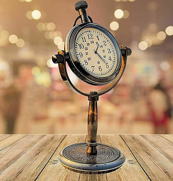 nBrand Unique NauticalnColour Antique BrownnStyle AntiquenSpecial Feature Antique, Table Top Clock, HandmadenPower Source Battery PowerednShape RoundnMaterial BrassnFrame Material Wood, BrassnMounting Type TabletopnAlarm Clock No₹1,699.00Original price was: ₹1,699.00.₹849.00Current price is: ₹849.00. -