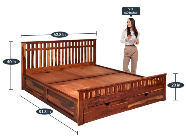 Brand Springtek Dimensions(In Inches) H 33.5 x W 60 x D 78 Weight 100 KG Warranty 12 Months' Warranty Assembly Assembly by Brand Primary Material Sheesham Wood Room Type Bedroom Storage Drawer Storage Seating Height 14.9 Recommended Mattress Size 78 L x 60 W Inch Product Rating 3 Dimensions (In Centimeters) H 38.1 x W 152.4 x D 198.12₹36,719.00