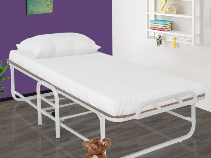 Freddie Roll-Away Single Bed with 4 inch Thick Foam Mattress in Grey Finish