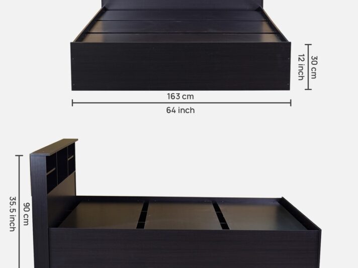 Brand Mintwud Dimensions(In Inches) H 36.2 X W 63.2 X D 86 Mattress size :78 L x 60 W Inch (Mattress Not Included) Weight 102 KG Colour Wenge Warranty 24 Months' Warranty Assembly Carpenter Assembly Primary Material Engineered Wood Room Type Bedroom Storage Drawer Storage Seating Height 12 Inches Recommended Mattress Size 78 L x 60 W Inch Product Rating 4.5 Dimensions (In Centimeters) H 91.94 x W 160.52 x D 218.44₹23,549.00 -