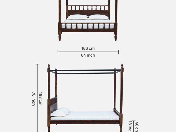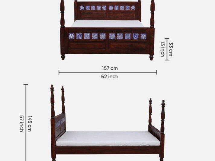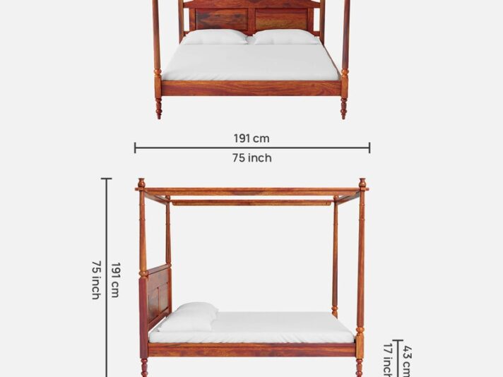 Brand Mudramark Dimensions(In Inches) H 57 x W 62 x D 75 Weight 75 KG Colour Honey Oak Warranty 36 Months' Warranty Assembly Carpenter Assembly Primary Material Sheesham Wood Room Type Bedroom Collection Kamchini Storage No Storage Seating Height 13 Recommended Mattress Size 78 L x 60 W Inch Dimensions (In Centimeters) H 144.8 x W 157.5 x D 190.5₹81,499.00 -