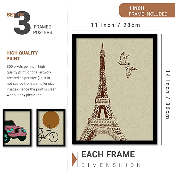 SIZE AND QUALITY Dimension:- 11 inch x 14 inch Print Quality: The artwork is printed on 300 GSM thick paper with high quality printer and vibrant colors, to give it rich look.