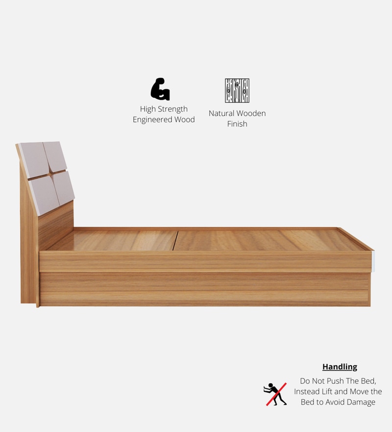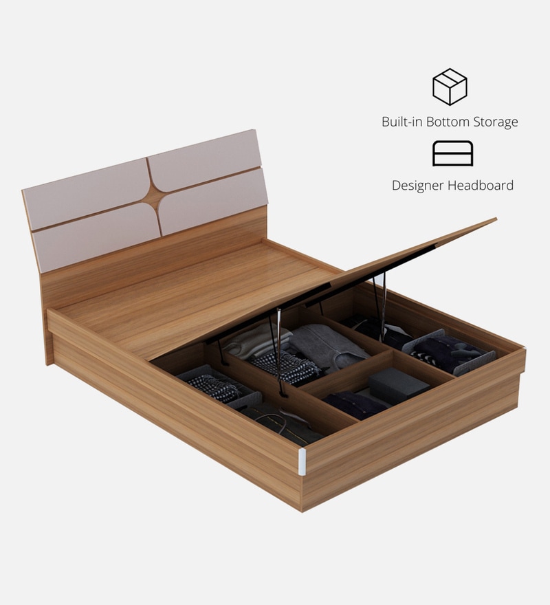 Kruger Queen Size Bed with Hydraulic Storage in Teak finish