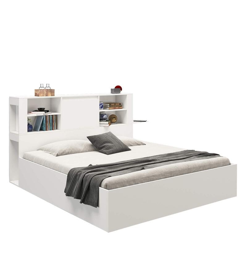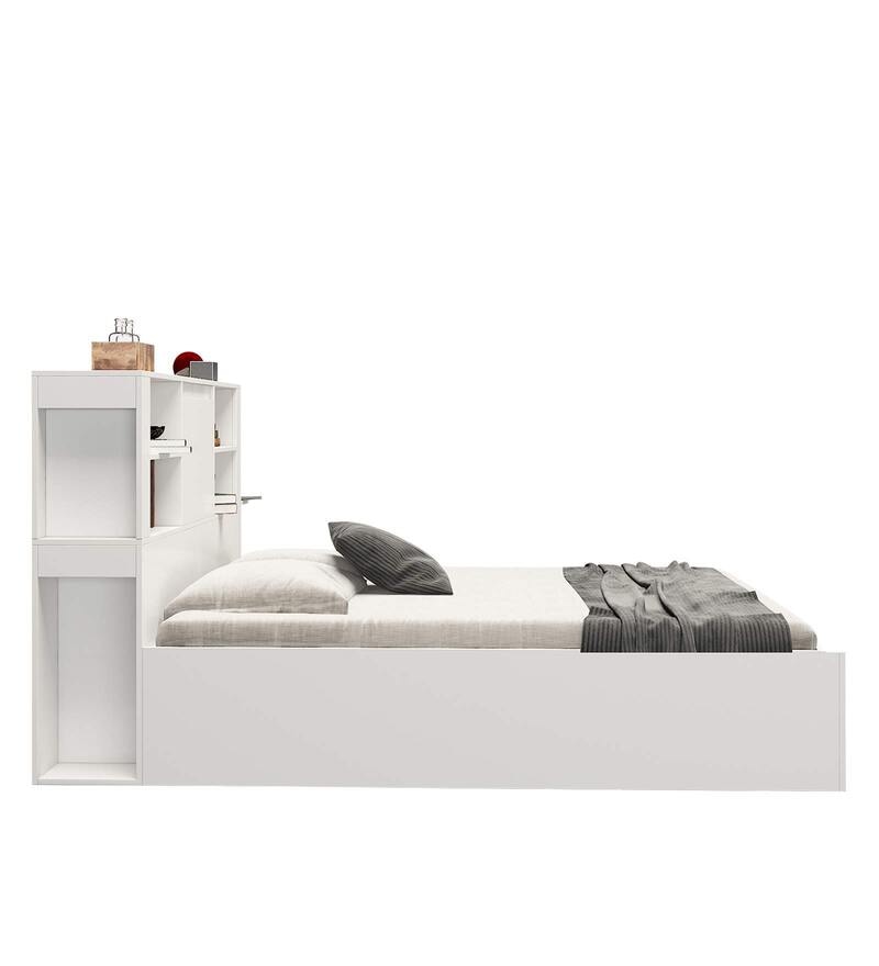 Magnus Queen Size Bed with Box Storage & Charger in Mist White Color