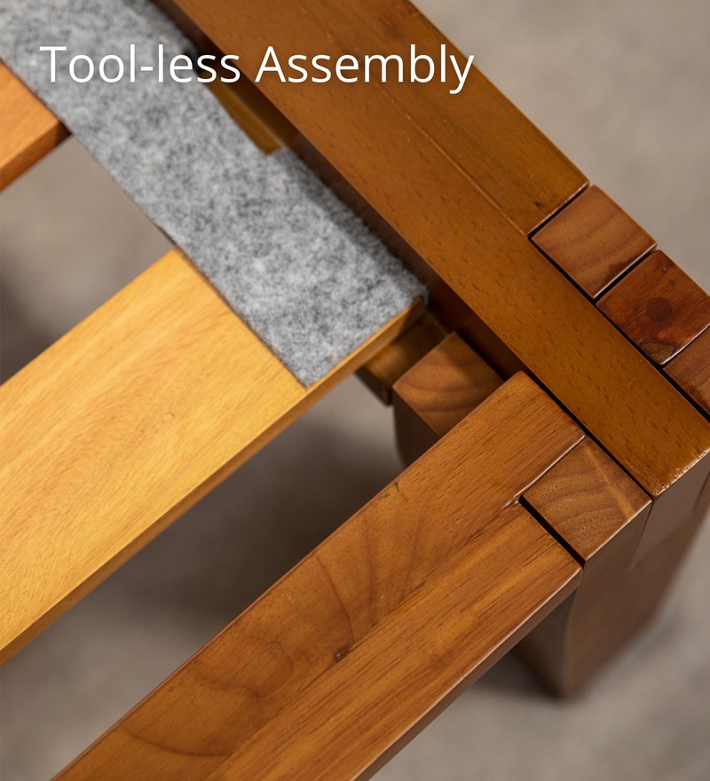 FORM & FUNCTION: Made with the classic Japanese joinery technique, this bed can be effortlessly assembled in minutes, no tools needed! Both the frame and headboard provide maximum comfort. The felt lined slats ensure that your mattress stays in place and minimises noise. Leg fasteners also help to minimise noise, so you can sleep uninterrupted.