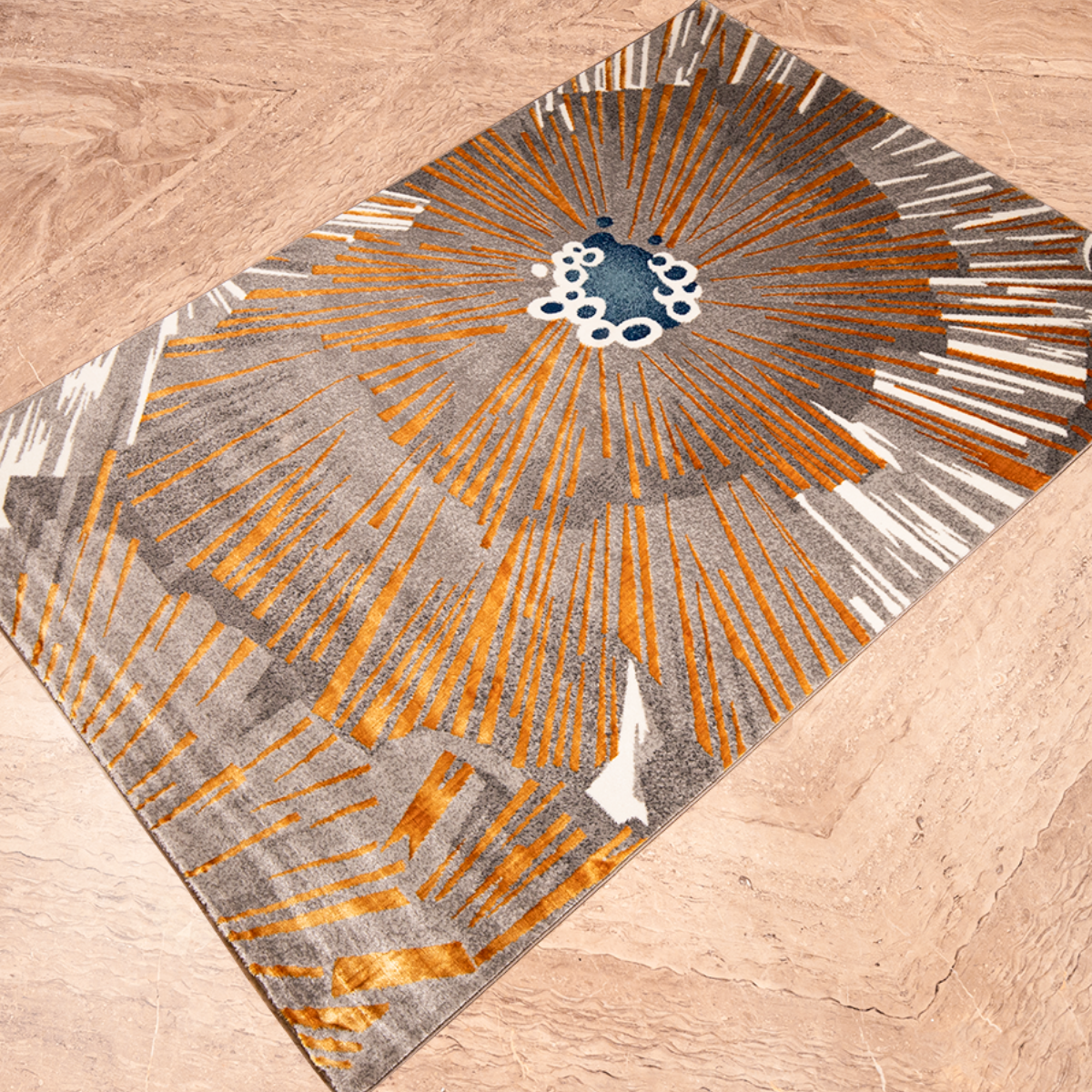 Rays of Gold Swirl Floor Rug (5×7.5 Feet)