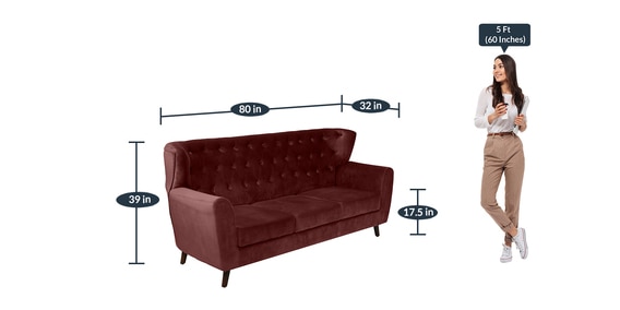 Wiltshire 3 Seater Velvet Sofa In Wine Red Colour