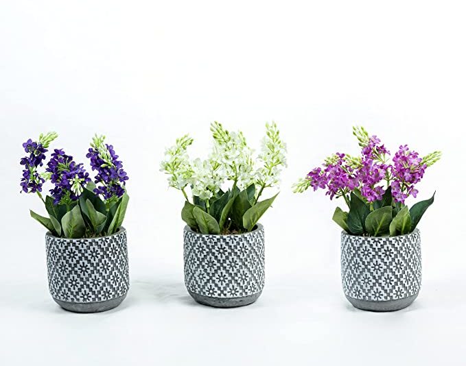 &BLOOMS Set of 3 Artificial Ceramic Flower Pot for Home Office Decoration Brazilian Lilacs Natural Looking Artificial Flower in Moroccan Pot-Size-19X14 CM