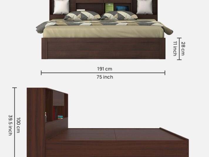 Brand Mintwud Dimensions(In Inches) H 39.4 x W 74.8 x D 86; Mattress Size :78 L x 72 W Inch (Mattress Not Included) Weight 145 KG Colour Walnut Warranty 36 Months' Warranty Assembly Carpenter Assembly Primary Material Engineered Wood Room Type Bedroom Storage Box Storage Seating Height 11 Inches Recommended Mattress Size 78 L x 72 W Inch Product Rating 5 Dimensions (In Centimeters) H 100.07 x W 189.99 x D 218.44₹31,449.00 -