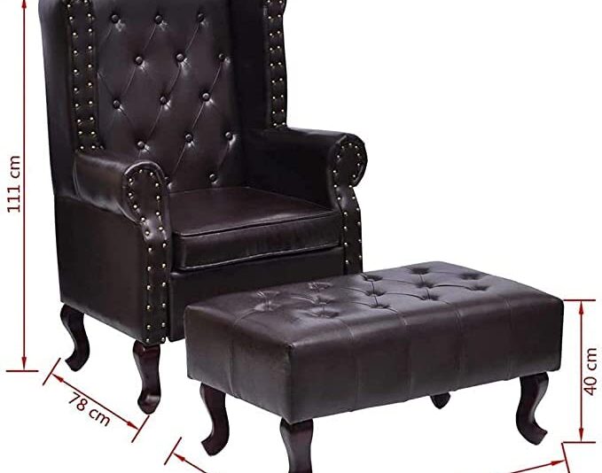 A to Z Furniture Leatherette ufted Wing Chair for Living Room Bedroom High Back Arm Chair Cushioned Lounge Chair Single Seater Sofa |Luxury Rest Chair Arm Chair with Footrest Stool (Dark Brown)